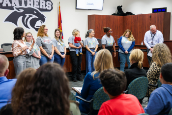 Family and friends gathered in Panther Arena to watch each student as they said a few words of gratitude for their coaches, family, and friends before announcing where they would be continuing their academic and athletic career.
