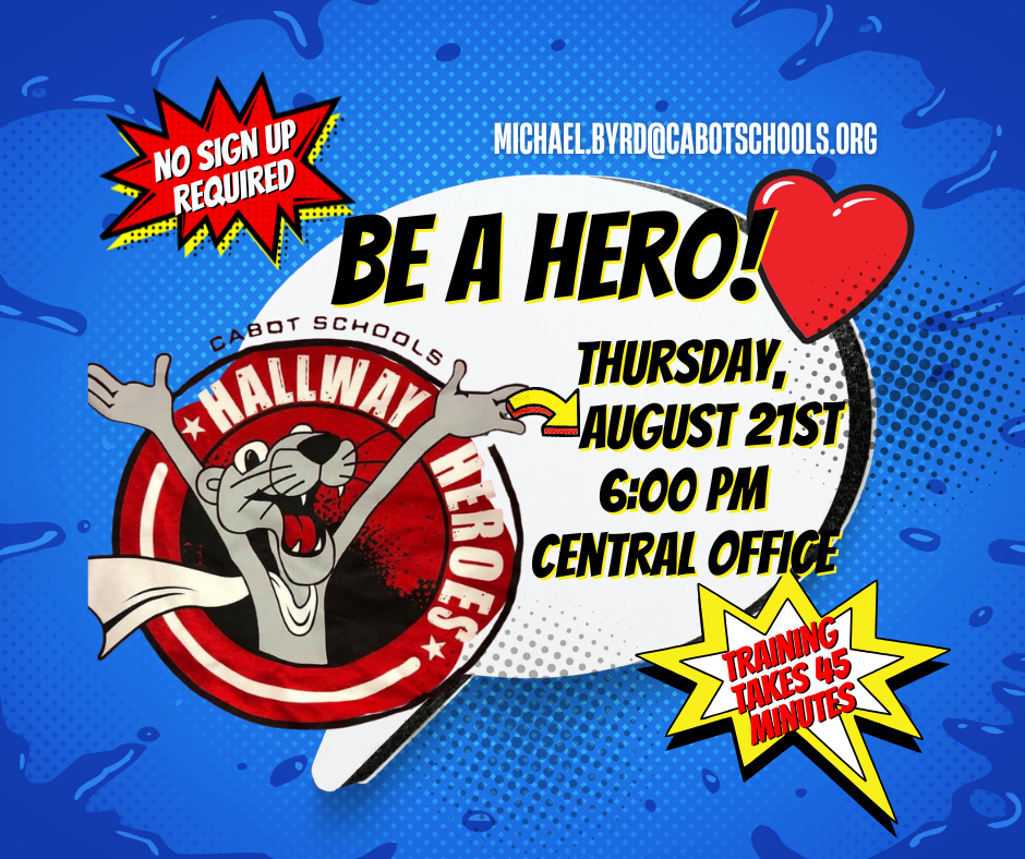 Background: The Cabot School District is looking for parents, grandparents, aunts, uncles, and family members of students who would like to "Be a Hallway Hero."