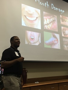 Traylor addressed cigarettes, e-cigarettes, and smokeless tobacco products. He also showed students pictures and talked about the consequences of using these products.
