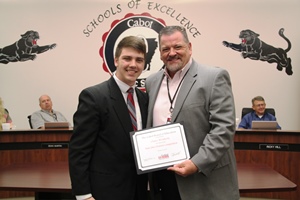Chaice Weatherly is a senior JAG (Jobs for America's Graduates) student. He works 30 hours a week and maintains a top level grade point average. Chaice won the state JAG public speaking contest which was held at UALR October 6th. He won a trip to Washington D.C. where he'll compete against 35 state winners at the JAG National Leadership Conference.