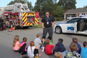 Visitors from the Cabot Police Department, Cabot Fire Department, UAMS, AIR EVAC, and MEMS took time from their busy schedules to share about their jobs, health, and safety with students.