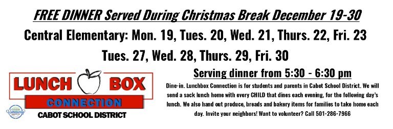 Free dinners will be served to families in the Cabot School District during Semester Break.