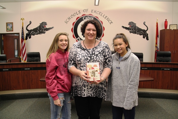Grace Bear and her friend Alexus Melton presented Director of Counseling, Terena Woodruff, with $663 dollars for Cabot Christmas Alliance. The organization helps students and families in need in the Cabot School District.