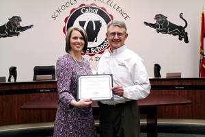 A Cabot teacher was recognized for her hard work and dedication at the January school board meeting. Mrs. Candy Crumbly recently achieved her National Board Certification.