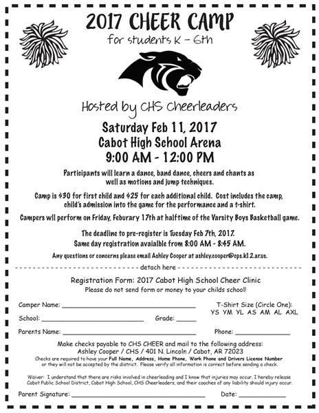 The CHS Cheerleaders will host a camp for students K-6th grade!