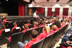 A student athlete and coach also spoke to the students. Connor Gaunt plays golf. He won the Boys High School Golf State Overall Championship last year. Coach Chris Beavert is an assistant track coach and both spoke to students about hard work and dedication.