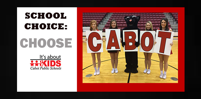 The Cabot School District is accepting School Choice applications beginning March 1, 2017. The deadline is May 1, 2017. For more information and to download an application click HERE, or call 501-843-3363 and ask for Director of Student Services Michael Byrd or email Michael.Byrd@cps.k12.ar.us.