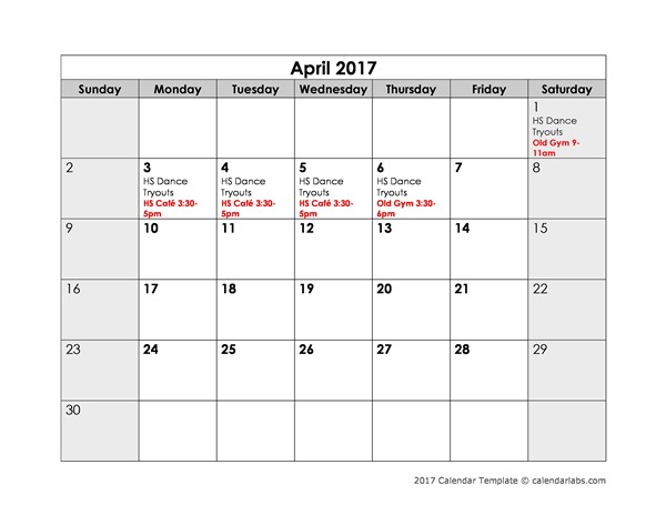 North/South Dance Tryouts: March 27th - 31st at CFA Gym