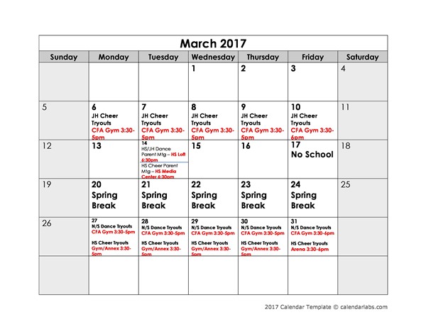 Tryouts for the Junior High School and Cabot High School Cheer and Dance Teams are quickly approaching. Please review the below dates and times for parent meetings and tryout schedules. You can also click HERE for a printable schedule.