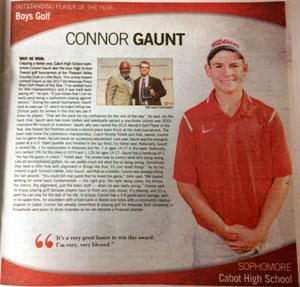 Cabot athlete Connor Gaunt also received 2017 All-Arkansas Preps Outstanding Boys Golf Player of the Year. As a shophomore, Connor helped his team win the overall golf tournament this year. During the overall tournament, Connor shot an even par 72, which included hitting two 25-foot putts for birdies in the first two par-3 holes he played. Connor was also named the 2016 Wendy's Golf Player of the Year!
