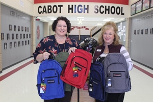 First Community Bank in Cabot donated 100 backpacks for our students Thursday.