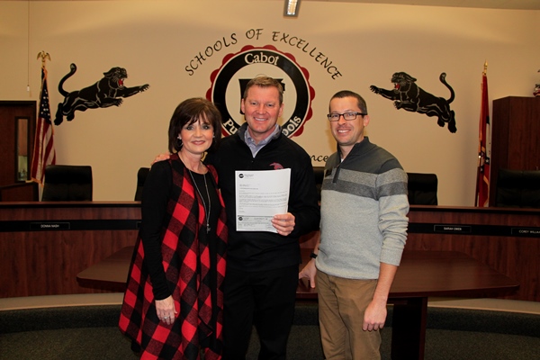 The Cabot School District received an early holiday present just before semester break. First Electric Cooperative District Manager Karen Southerland and Marketing & Development Representative David Copeland presented Superintendent Dr. Tony Thurman with a capital credit refund check in the amount of $23,088.55.