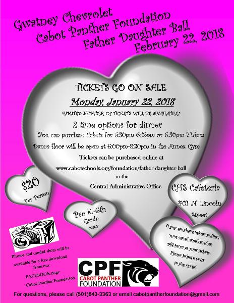 Girls get your dresses and dancing shoes ready! The Cabot Panther Foundation will host its annual Father Daughter Ball on Thursday, February 22nd.