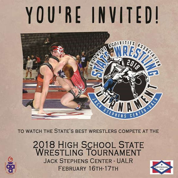The 10th Annual Arkansas State High School Wrestling Tournament will be held at the Jack Stephens Center located at 2801 S. University Ave., Little Rock.