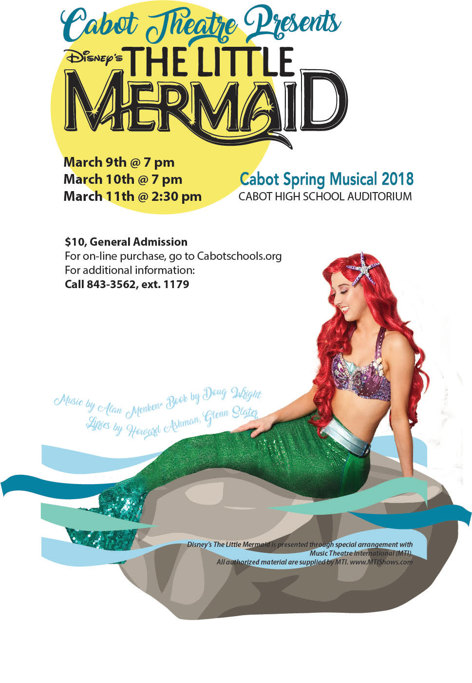 Cabot High Theatre proudly presents a Disney classic, The Little Mermaid. The family friendly production will take place under the sea on March 9th & 10th at 7:00 p.m. and March 11th at 2:30 p.m. in the Cabot High School auditorium.