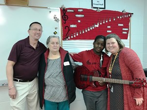 Special thanks to Mr. & Mrs. Bill Holden for donating the electric guitar. Mr. Holden is the district's Director of Custodial Services. Thank you to Mr. & Mrs. Emerson for donating an amplifier and supplies and thank you to Jacksonville Guitar for donating a musical DVD.
