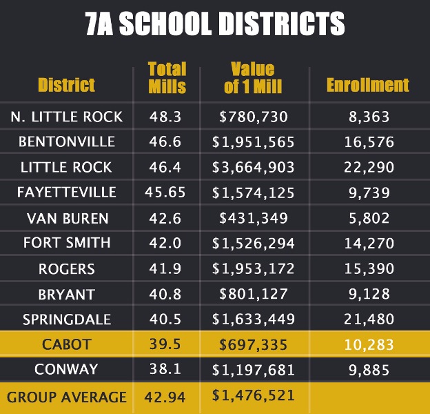 We have read repeatedly over the past few weeks, and even today, that "Cabot has the highest millage rate in the state." That is NOT true. We not only have one of the lowest millage rates, but the amount we generate in revenue for each mill is one of the lowest as well.