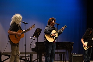 Act 2 - John West Band - Jan Sullivan - Guitar & Background Vocals, Payton Sullivan – Drums, and Micah Wetsell-Bass performed music by the Eagles. Dr. West, CJHS Principal gave a multi-talented performance playing the piano, guitar and …YES …singing to the Eagles.