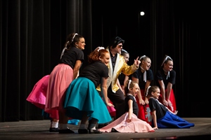 Act 4 - CHS Broadcasting teacher Chuck Massey & the CDA dancers. “Chelvis” won the show with his rendition on ELVIS'S YOU AIN'T NOTHING BUT A HOUND DOG! His talented backup dancers from Cabot Dance Academy helped him steal the show by receiving the highest votes and winning $1,000.