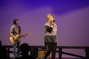 Act 6 - Tina Latimer with the Fault-Line Band represented Special Programs. Ms. Latimer's son Christian Niell played Lead Guitar, Hayden Crafton - Drums, Matt Brundage - Bass, and Grant Adams - Rhythm Guitar. They rocked the house with a song dedicated to her daughter “SWEET CHILD OF MINE.” This performance won them $500 and the runner-up spot with the second highest votes.