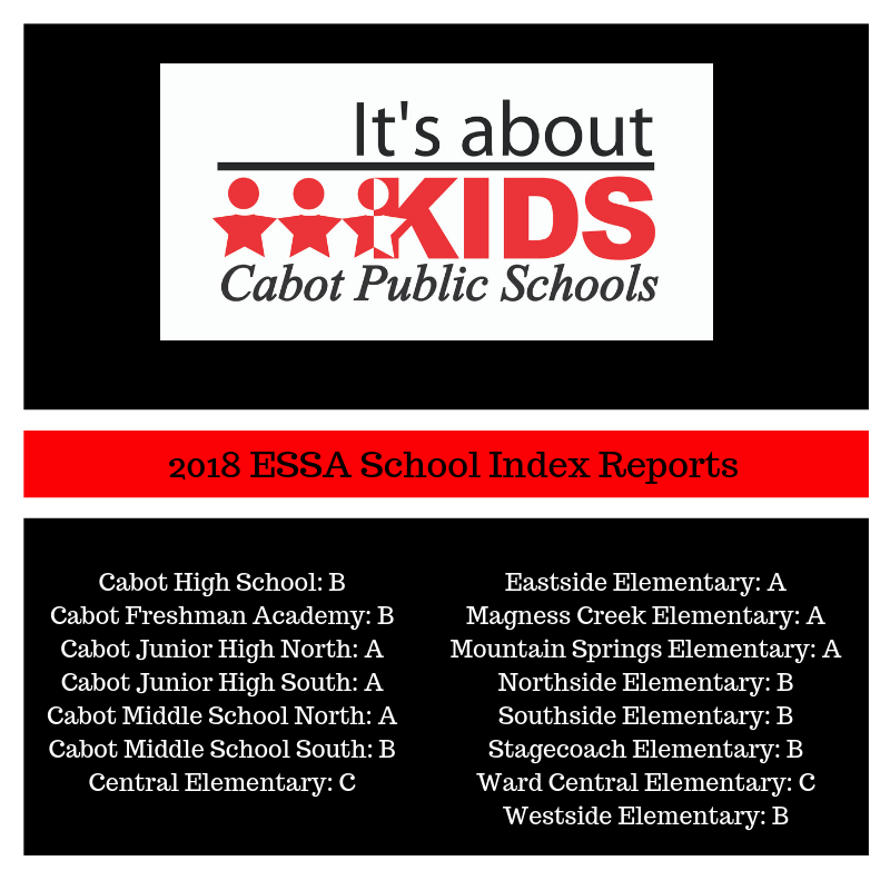 Cabot Public Schools received its grades Friday, October 12th. We know we have more work to do, but we are proud of the progress our students have made, and the hard work of our teachers and staff. Click on the school and on the letter grade for more details.