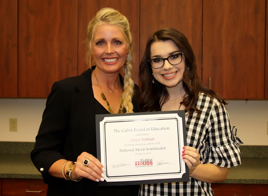 Congratulations Claire Tebbutt. Claire is one of about 16,000 students in the country and one of only 132 in Arkansas who have been named as National Merit Semifinalists by the National Merit Scholarship Corporation and she deserves to be recognized for that achievement.