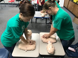 During the 20 minute class, attendees are given hands-on training and instruction and practice on how to save a life. The training has already proven successful with one teacher recently performing CPR on a family member.