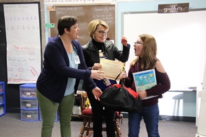 Students learned their drawings won the Lonoke County Hometown Health Coalition's Healthy Community Poster Contest. The artists were surprised in class by Carey Woods, LHU Administrator with the Lonoke and Cabot Health Unit, as well as Anna Haver, HHI Coordinator for the Central Region.