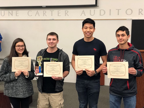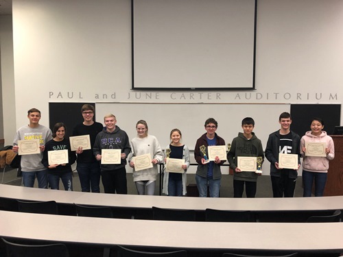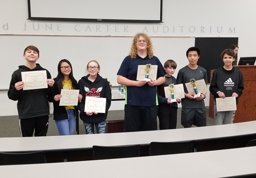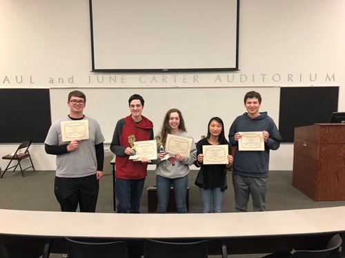 From left: Jackson Tucker, Emily Berry, Taylor Sims, Nicholas Hazeslip - 3rd Place, Jay Decker - 2nd Place, Chuck Zhang - 1st Place, and Zachary Brown.