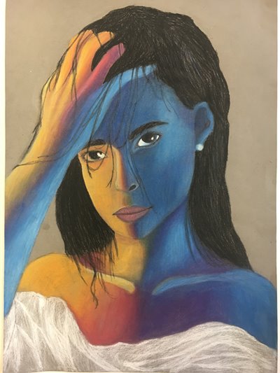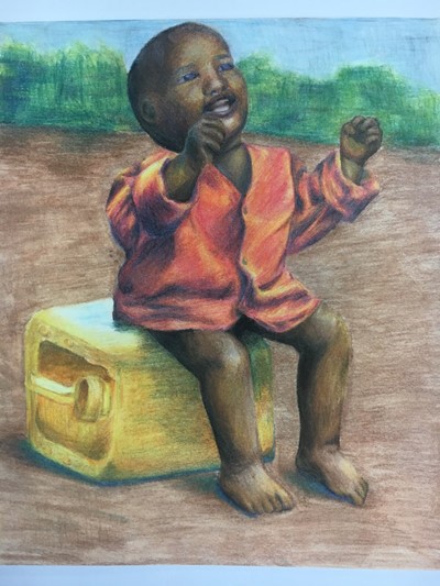 Grace Mackey "Morning Meditation" Colored Pencil on Black Paper