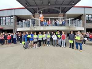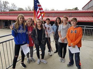 As part of the “I Believe, I Belong” initiative implemented by this year's student council members, Cabot Junior High North student council finished out a schoolwide kickball competition with a pep rally Thursday, November 14th to reflect on the benefits of this activity and present awards. Students were enthusiastic and showed politeness and respect during this assembly for all in attendance. The rally began as Brodie Brown, Student Council Vice-President welcomed everyone to the courtyard. Then Kallen Spencer-Leavitt led the crowd in the Pledge of Allegiance.