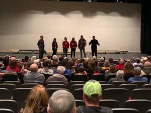 Before being recognized on the basketball court, students gathered in the Fine Arts Auditorium to hear from Superintendent Dr. Tony Thurman, Athletic Director and Head Football Coach Scott Reed, as well as Assistant Athletic Director Kasey Wylie.