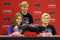 The first signee was Makeely Wade. Makeely has been playing volleyball at Cabot for six years and Coach Robertson has coached her the entire time. When introducing Makeely, Coach Robertson said that in volleyball the setter is like the quarterback on the team. Makeely was the quarterback and center of their team.