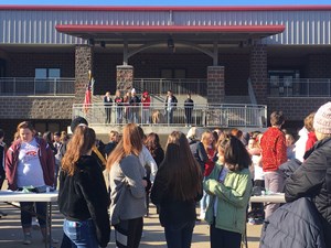 Prizes were awarded to the winning team and students prepared for the daily recitation of the pledge led by Kallen Spencer, student council representative. The most beautiful moment of the rally was the unified voice of all students as they stood at attention calling out the Pledge of Allegiance in unison.