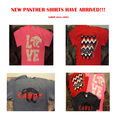 The athletic department is selling Cabot Panther t-shirts for $15.00 each.