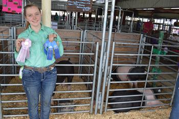 Nicole Williams who is also a junior won Reserve Grand Champion Breeding Gilt, 1st place March Gilt, 1st place Berkshire Gilt and Overall Swine Showmanship.