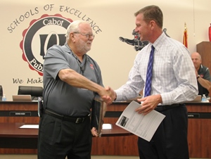 Superintendent Dr. Tony Thurman gave a special recognition to school board member Fred Campbell. This was Mr. Campbell's last meeting as a Cabot School Board member. Mr. Campbell took over this position in 2014 when another member resigned. He previously served on the Cabot School Board for twelve and a half years ending in 2011.