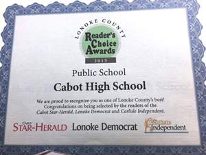 The readers of the Cabot Star-Herald, Lonoke Democrat and Carlise Independent have voted Cabot High School as the Best High School in Lonoke County.