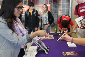 Students go online and enter all their information. They're then given a bar code. Instead of filling out contact cards at the career fair, representatives can scan the bar code and mail information to students about their school.