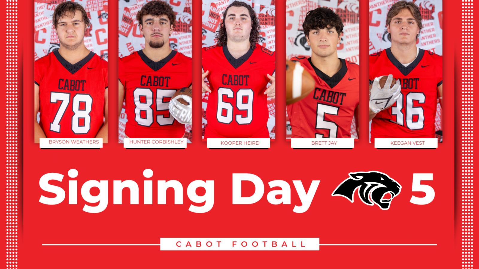 Family and friends gathered at Cabot High School February 5th to congratulate five student-athletes who signed their National Letter of Intent to play football next fall.