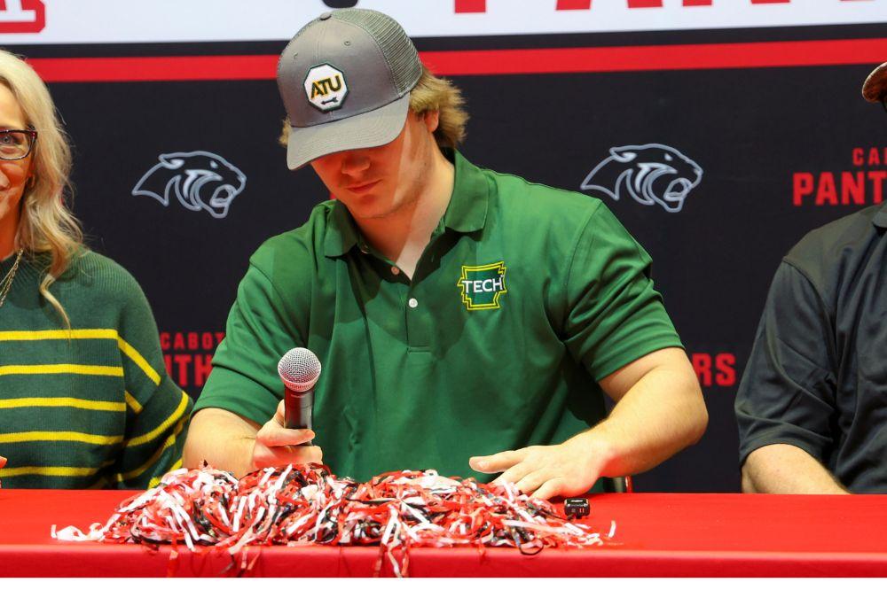Our first signee was Bryson Weathers. Bryson (Offensive Lineman) will play football at Louisiana Tech University next fall. Bryson is an All-Conference and All-State Linebacker, 2024 Arkansas All-Star, and he competed in the 2024 Blue Grey All-American football game!