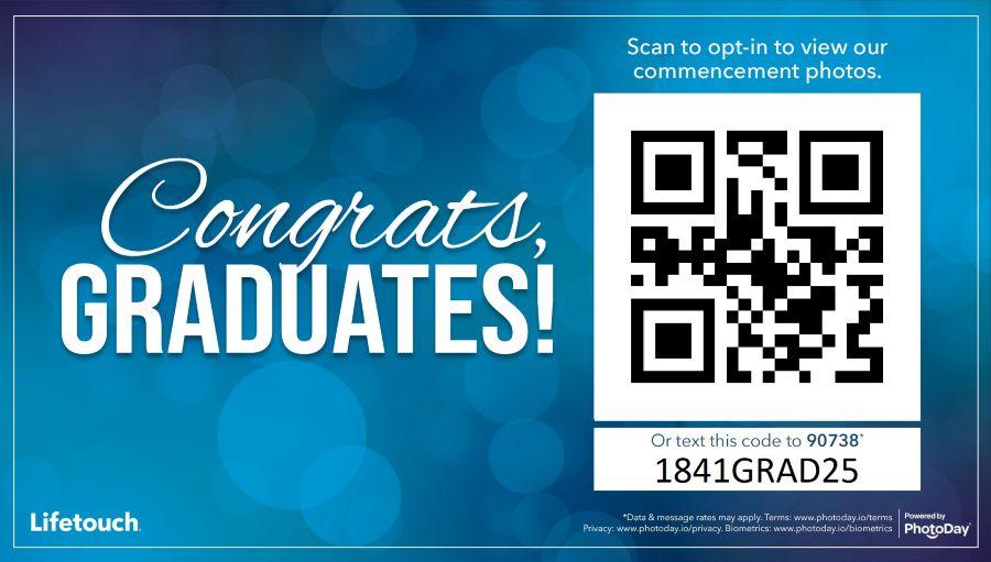To access your photos after the ceremony, text the code 1841GRAD25 to 90738.