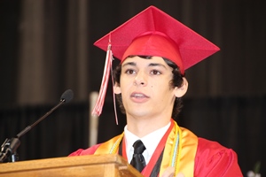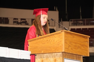 Valedictorian Adam Stivers spoke about being a loser and hard work. He says even though he knows he's not the strongest, fastest, best looking, or the smartest person, he can be just as successful as those who are through hard work. His advice to the Class of 2016, to learn from your mistakes, work hard, and find someone to smack you in the head and keep you focused.