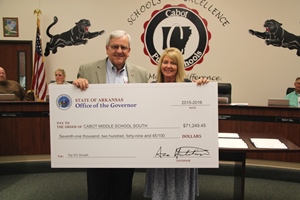Congratulations to Southside Elementary, Stagecoach Elementary, Cabot Freshman Academy, and Cabot Middle School South for receiving a total of $176,754.91 in reward funds. Senator Eddie Joe Williams presented the principals with their checks.