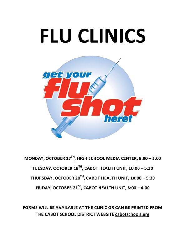 Click HERE for more information on the Influenza Vaccine, plus read the Arkansas Department of Health's Privacy Notice. On the link you'll also find the Health Department consent form and the School District consent form. Please fill out these forms.