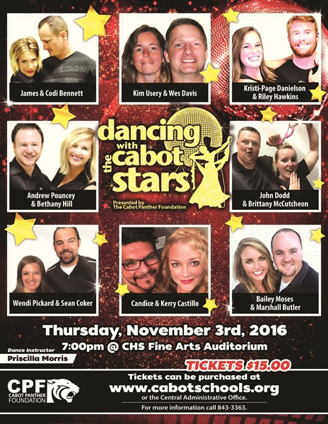 Come and join the Cabot Panther Foundation for an evening of fancy footwork and fun as they proudly present 'Dancing with the Cabot Stars' on Thursday, November 3rd in the CHS Fine Arts Auditorium.