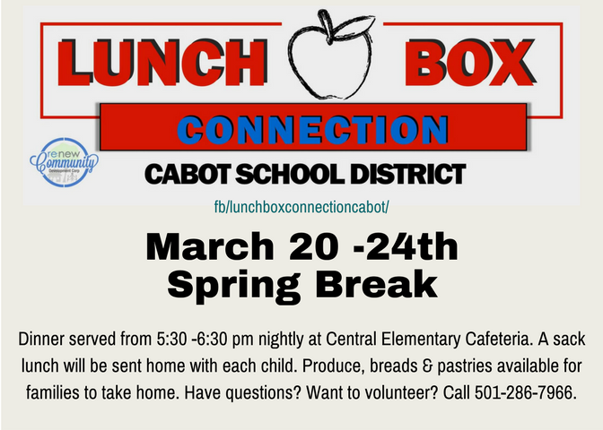 The Lunch Box Connection is once again serving free dinners to families in the Cabot School District during Spring Break.