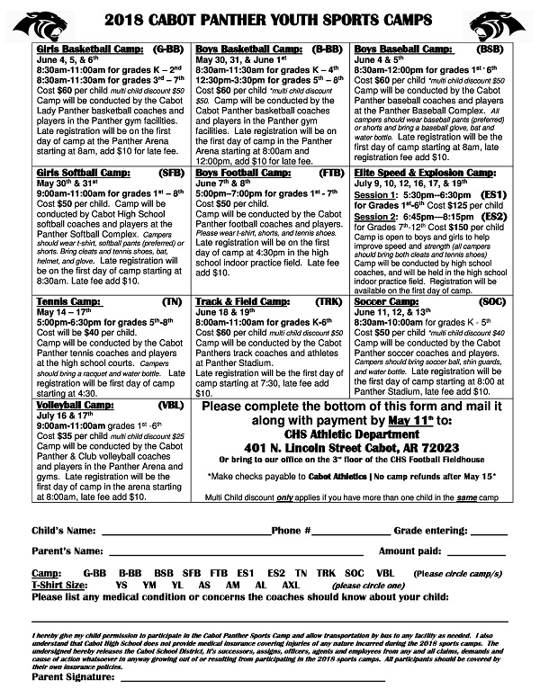 The Cabot High School Athletic Department is offering numerous youth sports summer camps.