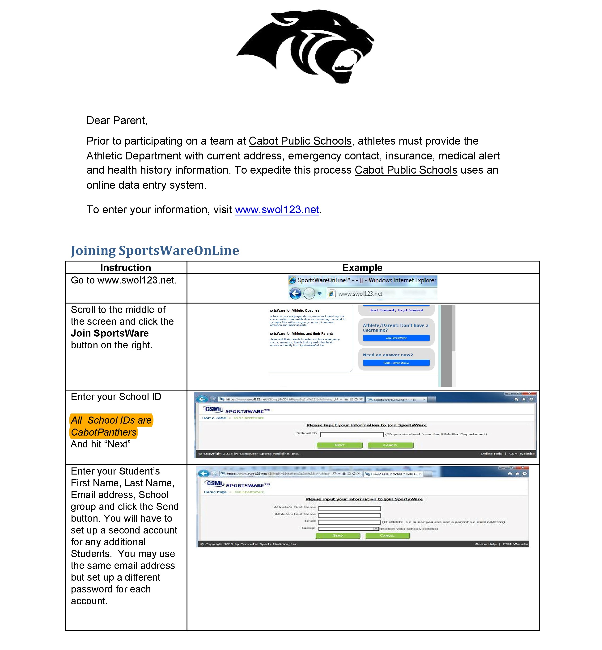 *All paperwork is online (www.swol123.net) and must be completed online