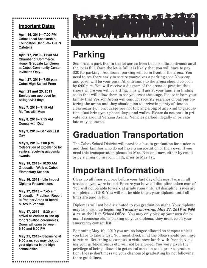 CHS Graduation Information 2019